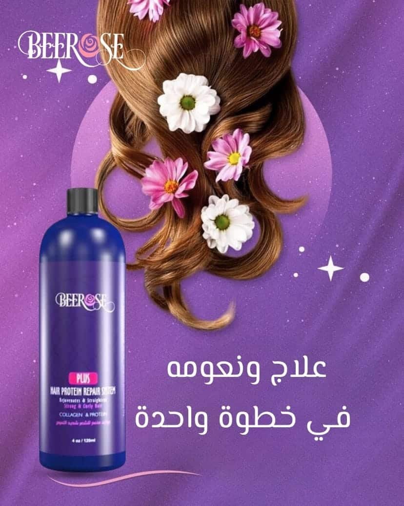 مجموعة Beerose هي الحل الاحترافي لإصلاح الشعر التالف والخشن والمحافظة على نتيجة البروتين لأطول فترة ممكنة. البروتين Beerose Plus Hair Protein Repair System ينعم الشعر الخشن أو شديد التموج، يعيد له الحيوية واللمعان لأنه غني بالكولاجين والبروتين الطبيعي، ويصلح التلف من الداخل مع نتيجة تنعيم قد تدوم من 6 إلى 9 أشهر بدون دخان أو روائح كيميائية مزعجة، وآمن للأطفال من بعد 10 سنوات وللحوامل من الشهر الثالث للسابع.
